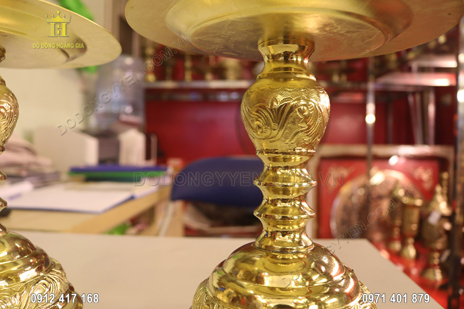 Đôi Chân Nến Bằng Đồng Vàng Gò Thủ Công của Đồ Đồng Hoàng Gia được đúc thủ công bằng đồng vàng nguyên khối vô cùng đẹp và sắc nét.