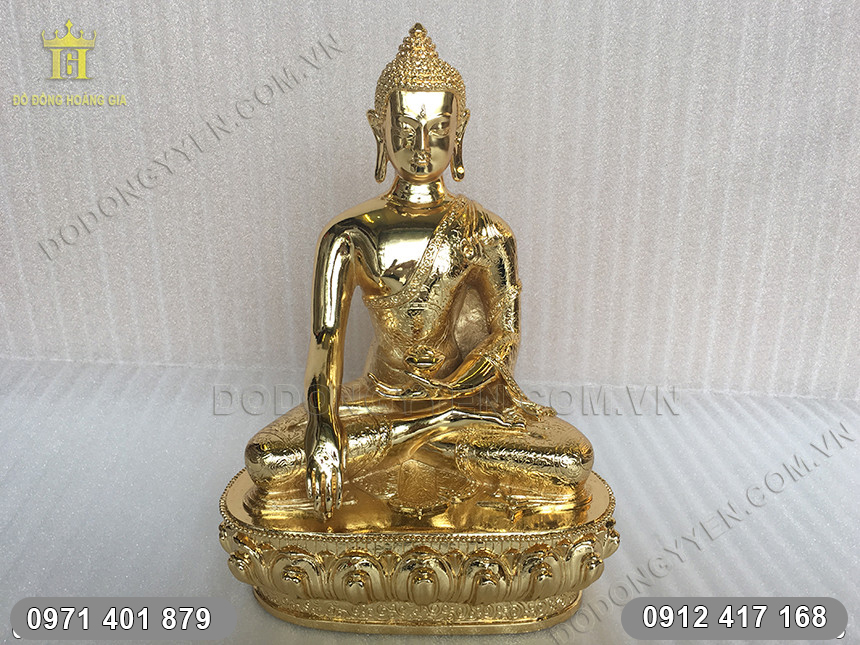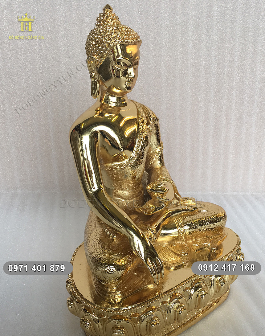 Tượng Phật Thích Ca Mâu Ni được đúc bằng đồng thau nguyên chất Mạ Vàng 24K cao cấp, sang trọng.